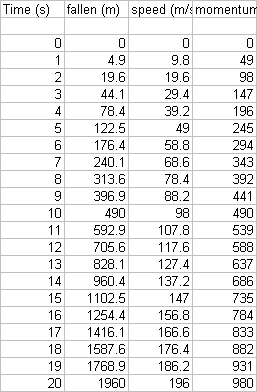 This is a graph of the momentum of a 5 kg ball being dropped from rest