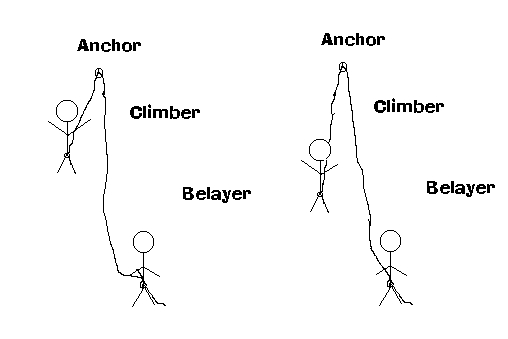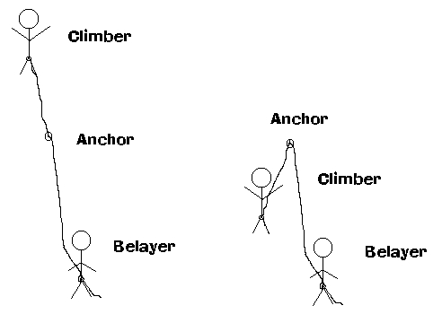 himself to the anchor. In top roping the climber falls only far enough to take the