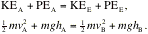sum of the potential energy (PE) and kinetic energy (KE) is the same at points
