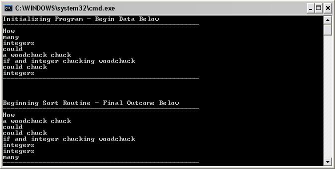 System.out.println("Beginning Sort Routine - Final Outcome Below"); //