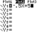 would be, y=-.5x+5. The negative is used because the car is moving towards the